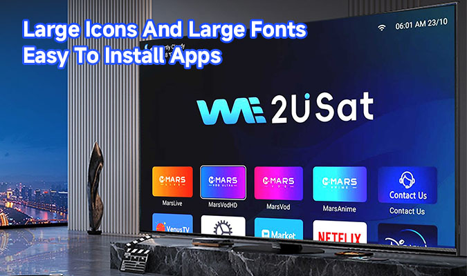 Set up in just three steps: 1.Plug in 2.Connect to Wi-Fi 3.Start streaming ! With Large icons and Large fonts, intuitive interface, it’s so simple that both the young and the elderly can use it with ease.