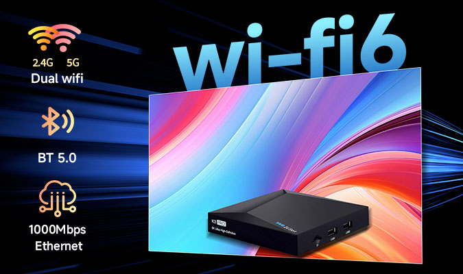 K3 Pro+ With 1000Mbps Ethernet and dual-band WIFI 2.4/5G And Wi-Fi 6 technology,it delivers reliable, stable, and lag-free connectivity.Even during periods of heavy network traffic, you can enjoy crisp, fluid streaming of TV shows and movies.Built-in Bluetooth 5.0 enables easy connection to multimedia devices, speakers, mice, or headphones.